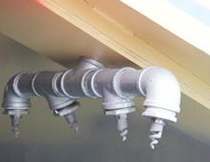 水路采用上置式结构,解决管路中残余外加剂和水的现象,喷头采用螺旋实心圆锥形喷雾,具有细密均匀的雾化效果,覆盖面积大,使物料搅拌更均匀。